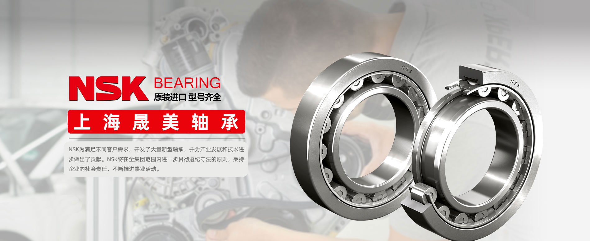 上海晟美軸承有限公司是一家以銷售進(jìn)口軸承為主業(yè)的企業(yè),我公司在工業(yè)領(lǐng)域有軸承配套及工業(yè)服務(wù)經(jīng)驗(yàn),在客戶中有著良好的口碑。公司致力于為客戶提供進(jìn)口軸承整體解決方案,涉及品牌有:SKF軸承、NSK軸承、FAG軸承、INA軸承、TIMKEN軸承、NTN軸承、IKO軸承、KOYO軸承等。